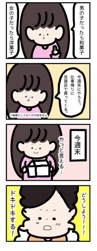 とりあえず、ジェンダーリビールの内容を決定。私もよくポロって言わなかった。えらい、えらい。旦那は小学生がプレゼント開ける前くらいそわそわしてた。