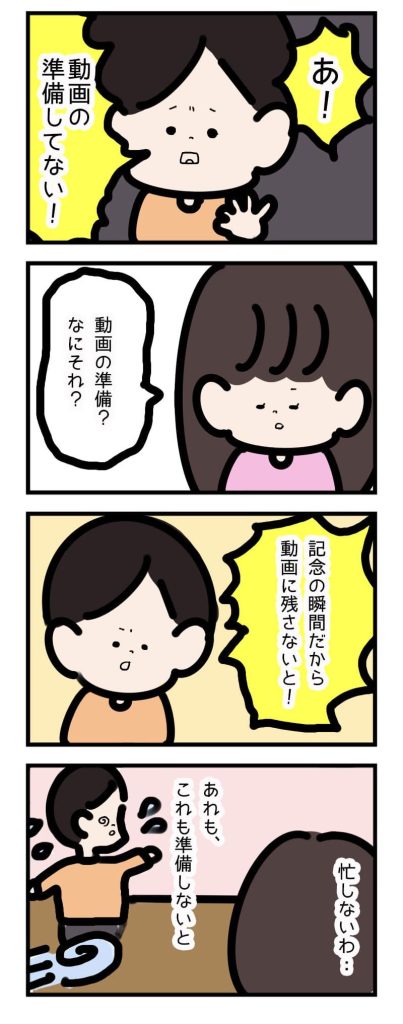 旦那はイベントごとをしっかりと残しておきたいタイプ。でも準備ができてないから当日になってバタバタ。動画撮影でも写真撮影でもなんでもいいからはやくしてくれ〜〜〜い。