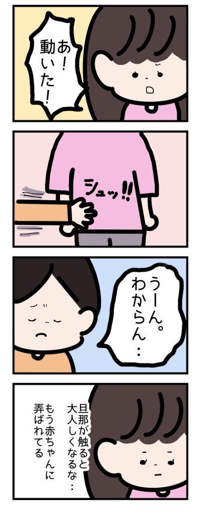 動いたのを感じたくてそわそわ。